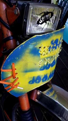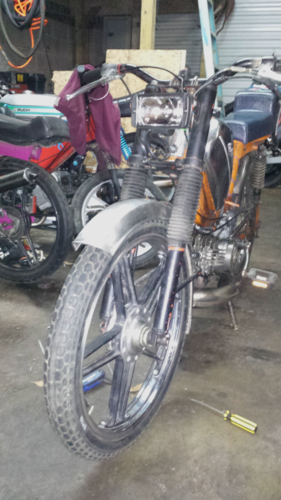This is my daily rider. Of all my bikes, kitted and stock, this one is my favorite. Its not the fastest or the slowest but it always runs. It is also my most neglected bike. I love seeing how far I can push it before it quits. There are zip ties on everything. My axle adjusters are all the way out. I have over an inch of play in my chain. I cant even be sure how much oil I put in the gas half the time. One day it will be pretty and get the love it deserves. For now its just a filthy work horse. It does mid-high 30s depending on the weather. The seat is from a eurboyz moby I found at Freds and had to save.