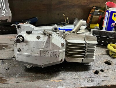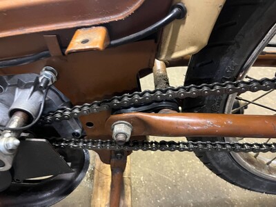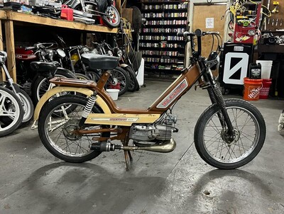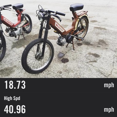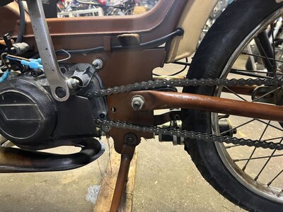 Pulled this bike out of the shop basement a few weeks ago and put some wrenches to it. First things first clean and rebuild the motor with new bearings and seals, added some fresh gaskets, changed the pipe to some old Italian circuit I had laying around, new tires/tubes, fresh cables and some new wiring, (not pictured) a front fender, I added a chain slider from some kids dirt bike to keep the chain off the swing arm, added an LED taillight under the bookrack. On the whole this was a nice refresh, the bike started right up and runs well, lots of fun for a small little kit