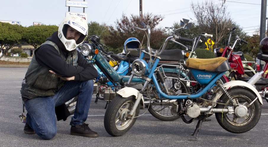 We got this bike in a huge pile of old bikes we bought a couple years ago. It sat in a pile of junk for a while, until i went out to the pile to get a M6x1.00 and got side tracked. Pulled it out and cleaned the carb, and boom first kick?! Needles to say this thing has held a place in my heart ever since! I literally just pulled the original carb off, and replace it with at 15:15 SHA (plugged up all the vacum lines with screws!) and and hacked on a Techno Bullet. It rips around at 35!