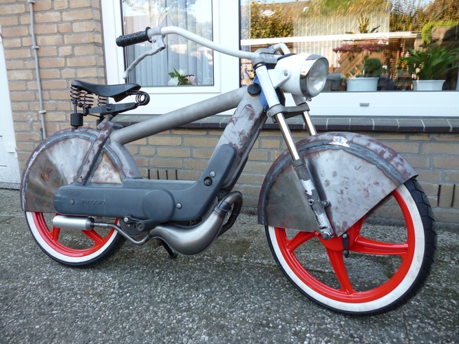 Setup: Belgian stock kickstart engine. Polini Variomatic with 100mm discs. 13mm Dell"Ortho Carb. 56 Jet. Polini Top One. Estimated top speed 60Km/h