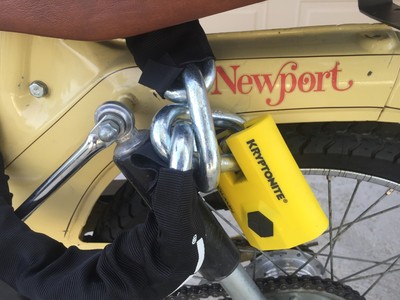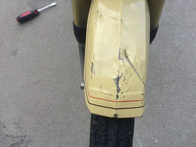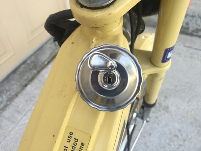 10/12/15 - Replaced the rear inner tube after getting a flat. Cleaned and lubed both chains. Swapped out gas cap for one with a lock. Cleaned out carb with sea foam - lots of smoke! Picked up a Kryptonite chain and fixed the speedo - top speed confirmed w/ GPS at 30.5 mph.