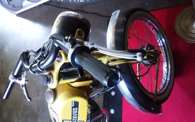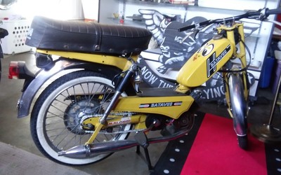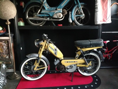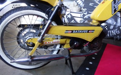 "Batavus" the "Harley Davidson of Europe". Introducing "Yellow Ecstasy" she is another Hot Tramp from Europe who now kicks it in the Fix It Rick shop... She was a Good College Girl most her life... She now wears Punk M-Bars , White walls and a sick Buddy Seat as a shop groupie with her girlfriend Blue Sky a late 70"s Tomos that is next to hit the work bench with parts from 1977 Mopeds on this coming build. Yellow and Blue are Portugal the Man fans and their Song Purple YELLOW, red and BLUE ecstacy.