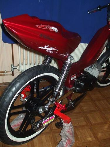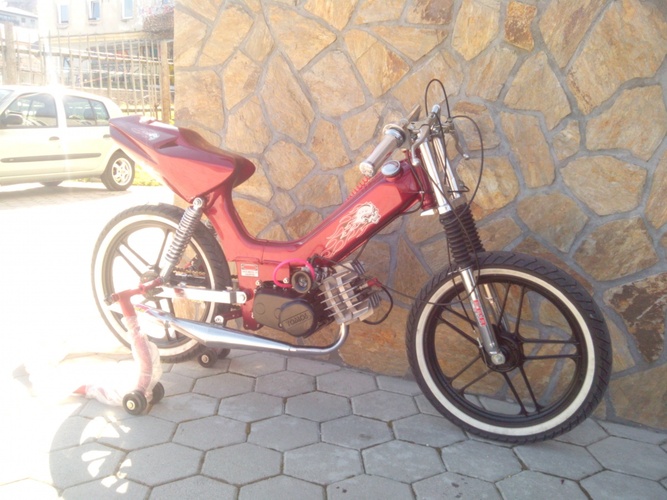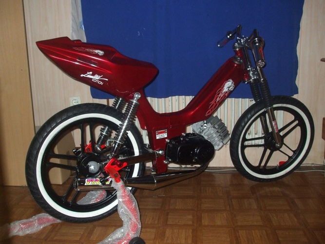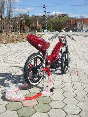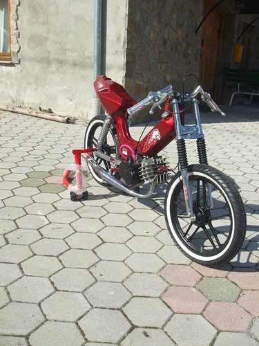 Hello i am from Slovenia ! This is my project for our company named Frčo Moto ( www.frcomoto.com ) . This sprinter is made only for scooter show-s and drag racing ! It has made clutch aluminum 1 and 2 gear , cylinder tuned .. And a lot of other stuff !
