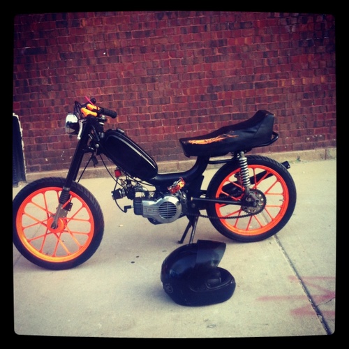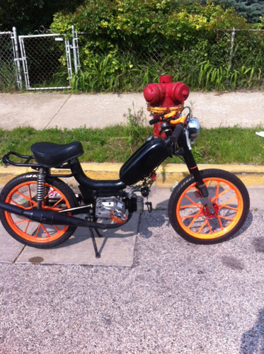 Ed's blue springs, Minarelli V1 77 Race Crank, Alumunum fan cover, and geared at 12/36.