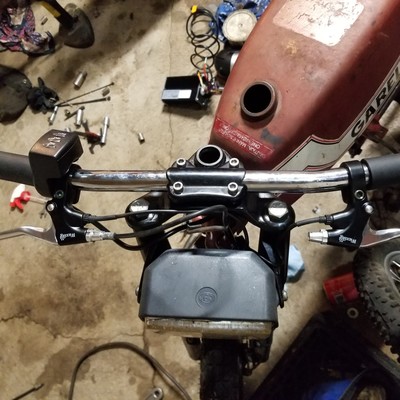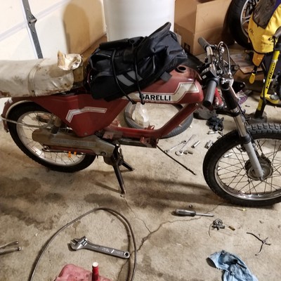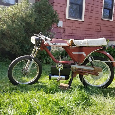Last year my friend Mark left his parts bike Garelli at my house. Totalled motor, no back wheel, no seat or lights, blown shocks, and we'd just swapped the forks to his other bike. I managed to smash this together for only about 400 bucks in just over one week. Despite only being able to work on it after kids asleep certain evenings when not hanging with my wife instead, felt pretty proud...