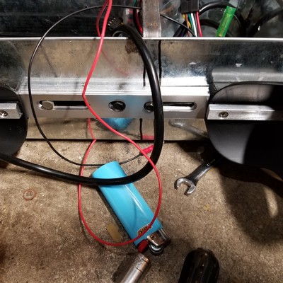 36v 1000w hub motor in a 20" wheel size, with 16" moped tires. 10Ah battery. Pretty underpowered but kept it cheap just to figure out how to make it work. Goes low 20s. Balls slow up hills. But its ALL ENTIRELY REVERSIBLE. Controller and battery etc all bolts into the existing motor mounts. Uses 36 to 12v step down for lights.