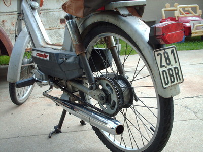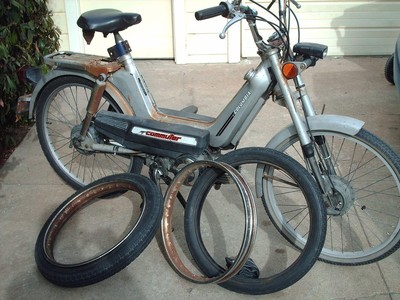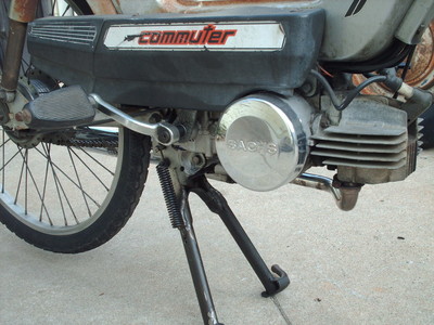 Increased stock (<145mpg) fuel economy up to 180 mpg while maintaining stock engine setup. Accomplished by eliminating nearly 8 lbs of wheel weight by converting to 24" mt. bike rims and tires. Gearing was (stock) 11th x smaller 40th rear. An additional benefit was increased cruise speeds on the flat from 24.5 MPH to 28 MPH. Naturally, by gearing higher (12th) cruising speeds on the flats increased to 30+ MPH but at a loss of fuel economy. Other: required modifying trailing arm and center stand, used stock (180mm) spokes but in a single-cross pattern and enlarged rim holes for larger nipples.