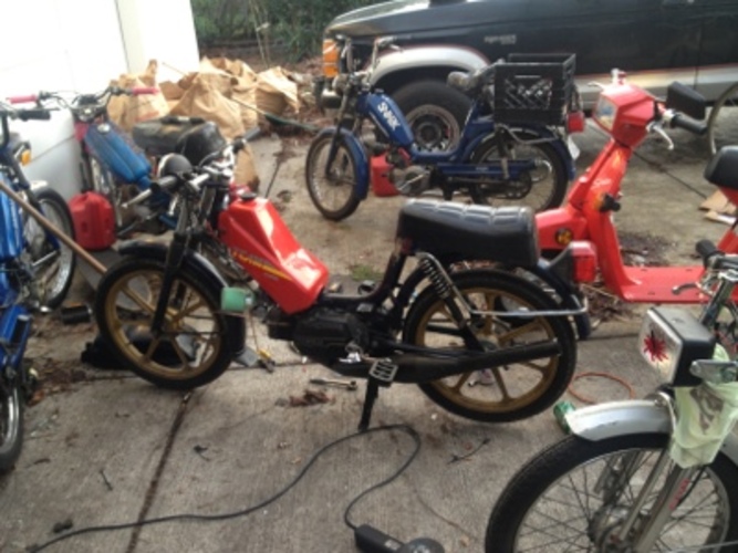 Fuck a top tank. Got a mint ssxl ltd cut the tank mounts off and made it a step through. nos team garelli tank bungeed and tied to the frame. custom seat mounted by pounding it in with a hammer.