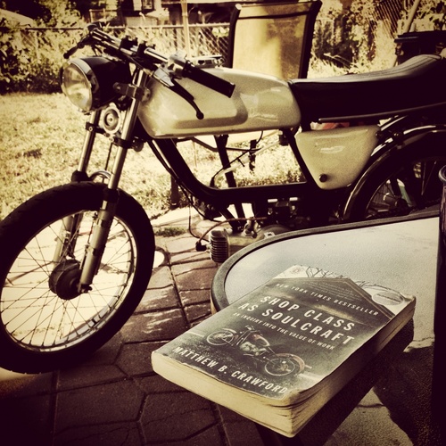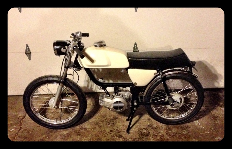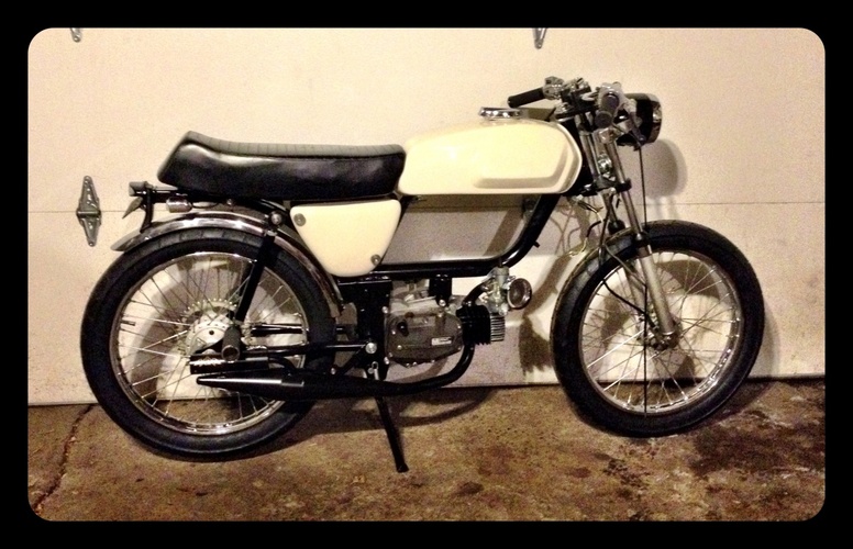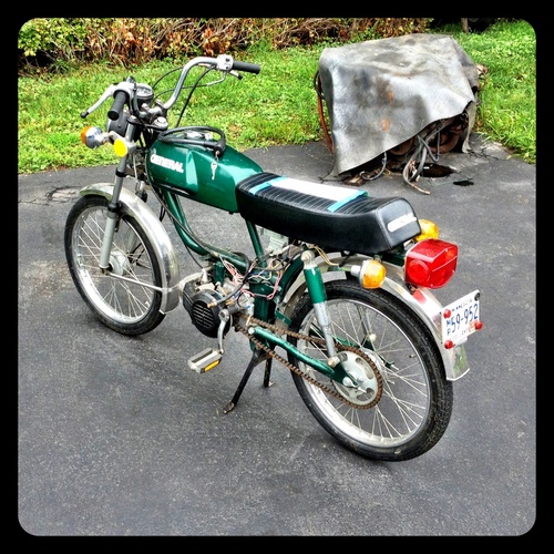This is my first venture into the world of mopeds. I bought it just about a year ago. It's been a lot of fun and a bit of frustration. After a month of riding I already have a growing list of winter projects for it, including a kick start bottom end and better brakes. I might step down a bit on the carb size as well. Scratch that. Just bought a 90cc kit... step up on the displacement rather than down on the carb... seems logical.