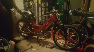 74cc Gila kit e50 bottom end aluminum stuffy crank tm24 flatslide mlm bk100 pipe pug 103 starfish mags still alot of work to go but I can see it