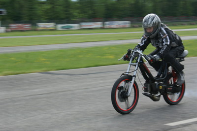 This is my Gilera CBA. I built this with my dad a few years ago. Because it is not street legal, I can only use it on racetracks and it's a lot of fun :)