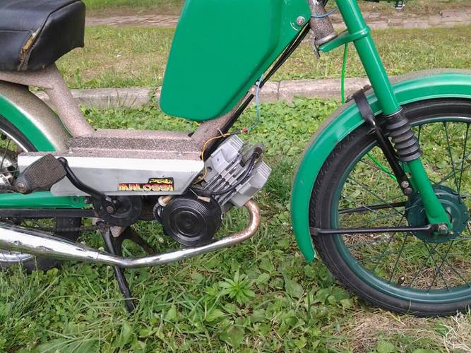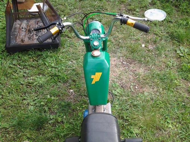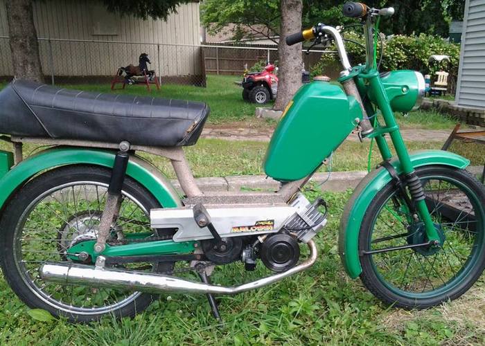 1978 batavus stripped to frame, repainted with texture paint and two toned with a little green. Laura m48 with a m56 jug, head, and piston.