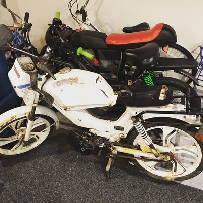 I had this tomos and a radiator lying around, might as well make it water cooled.