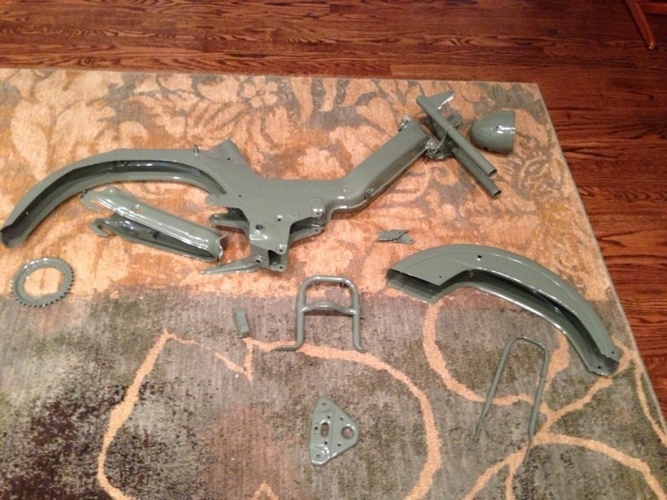 That is one classy moped, and the best execution of use for those ebay hard bags I have yet to see. Well done.