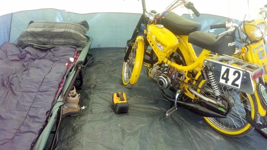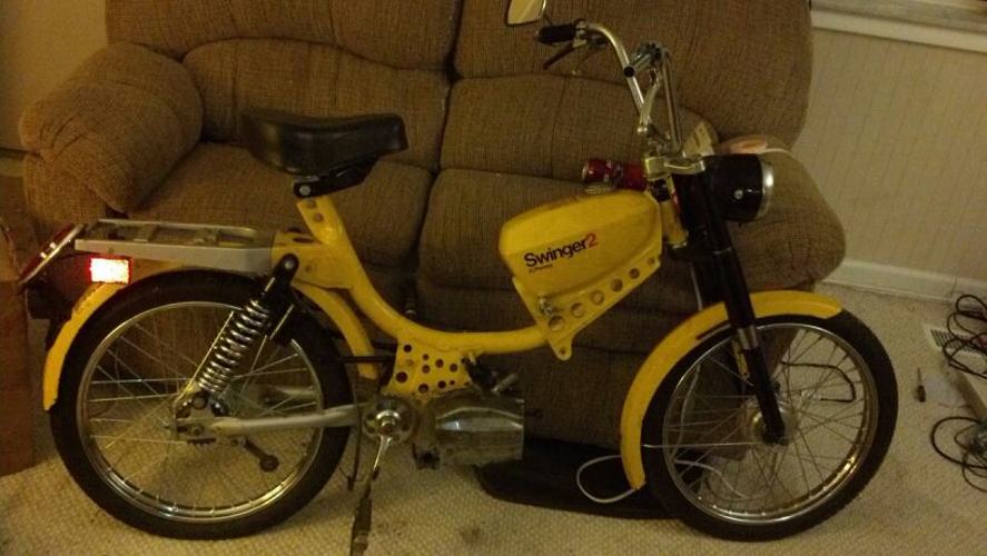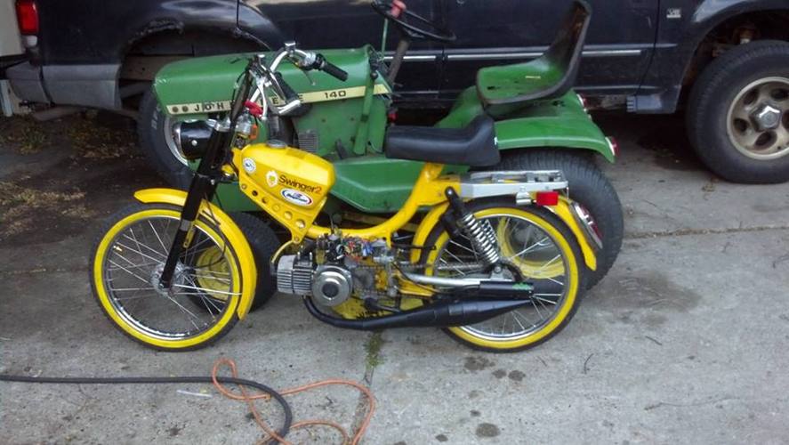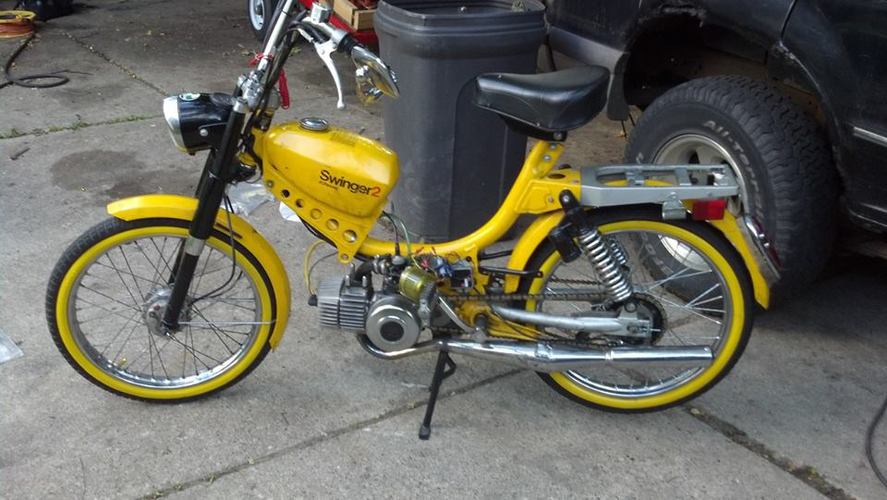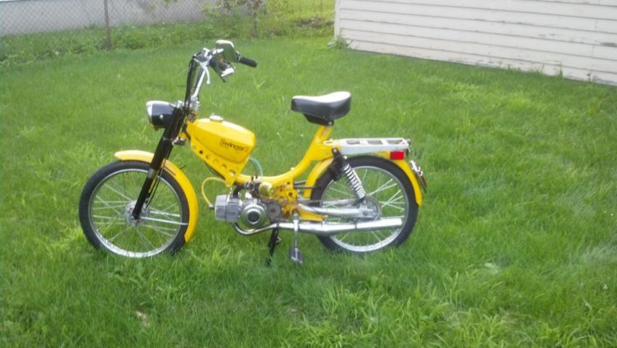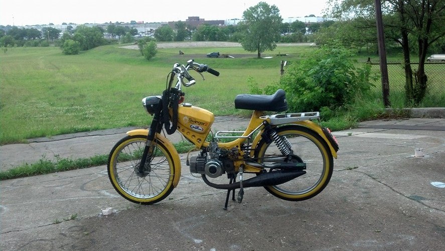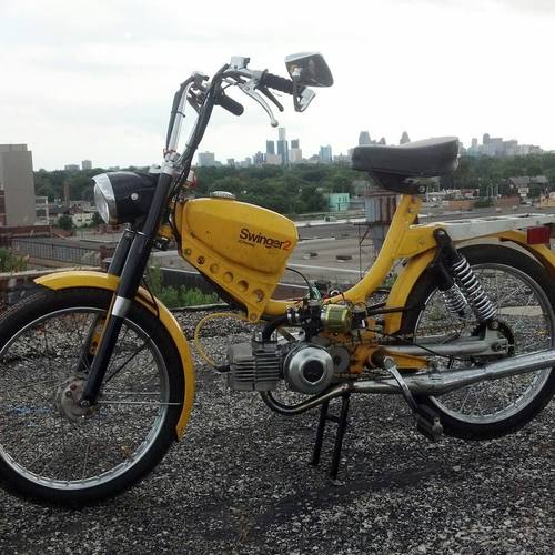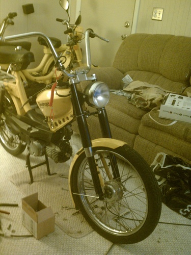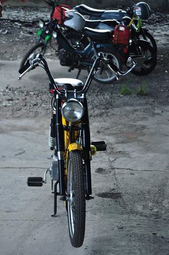 Update (pre rally): pacer bars, mlm intake for a 24 mikuni (squeezed it to fit), ciao headlight ring because i broke the original, LED motorcycle 50's ford taillight, billet aluminum mirror, still need to find springs for the rear, but she rides nice.
