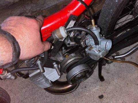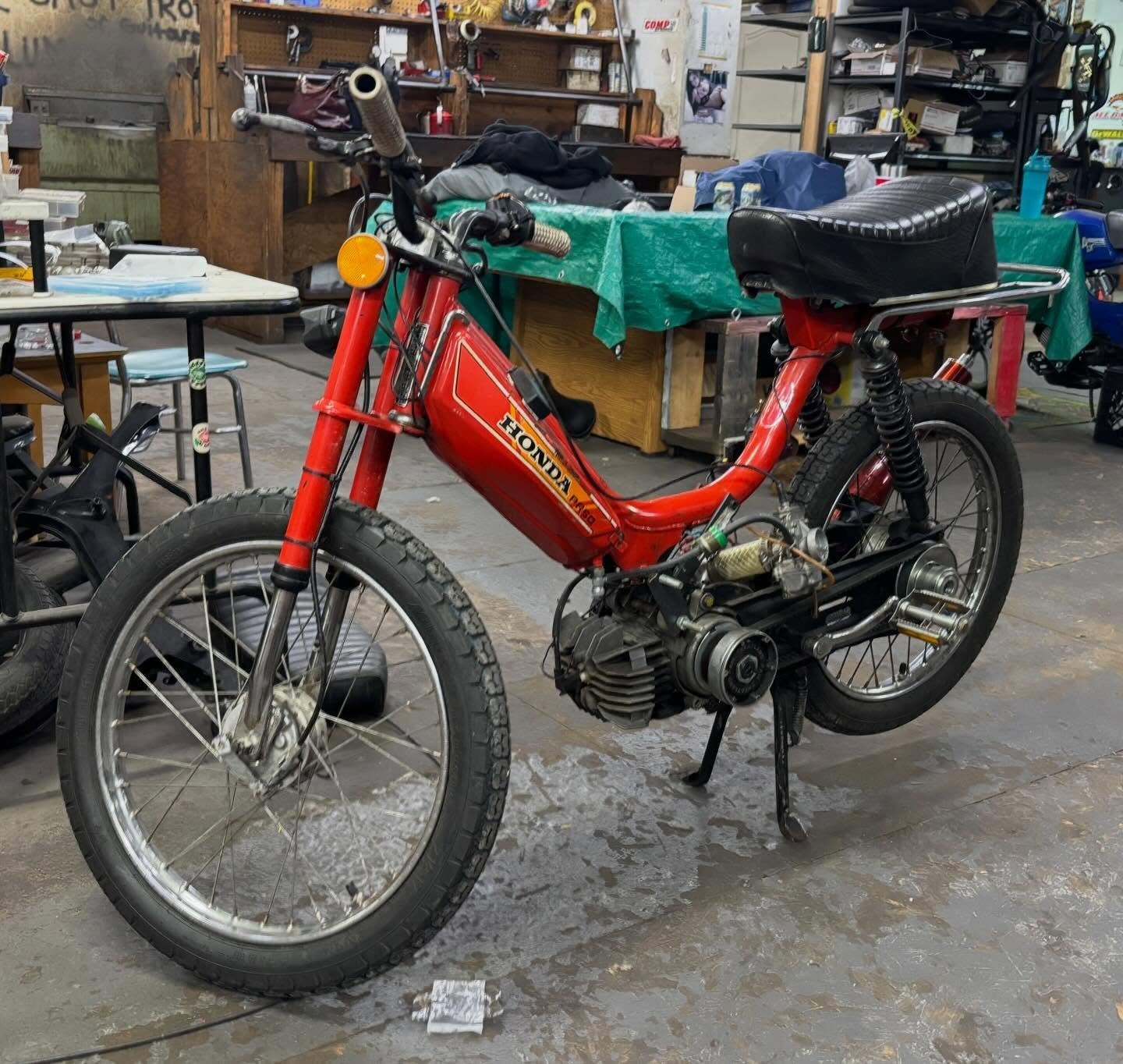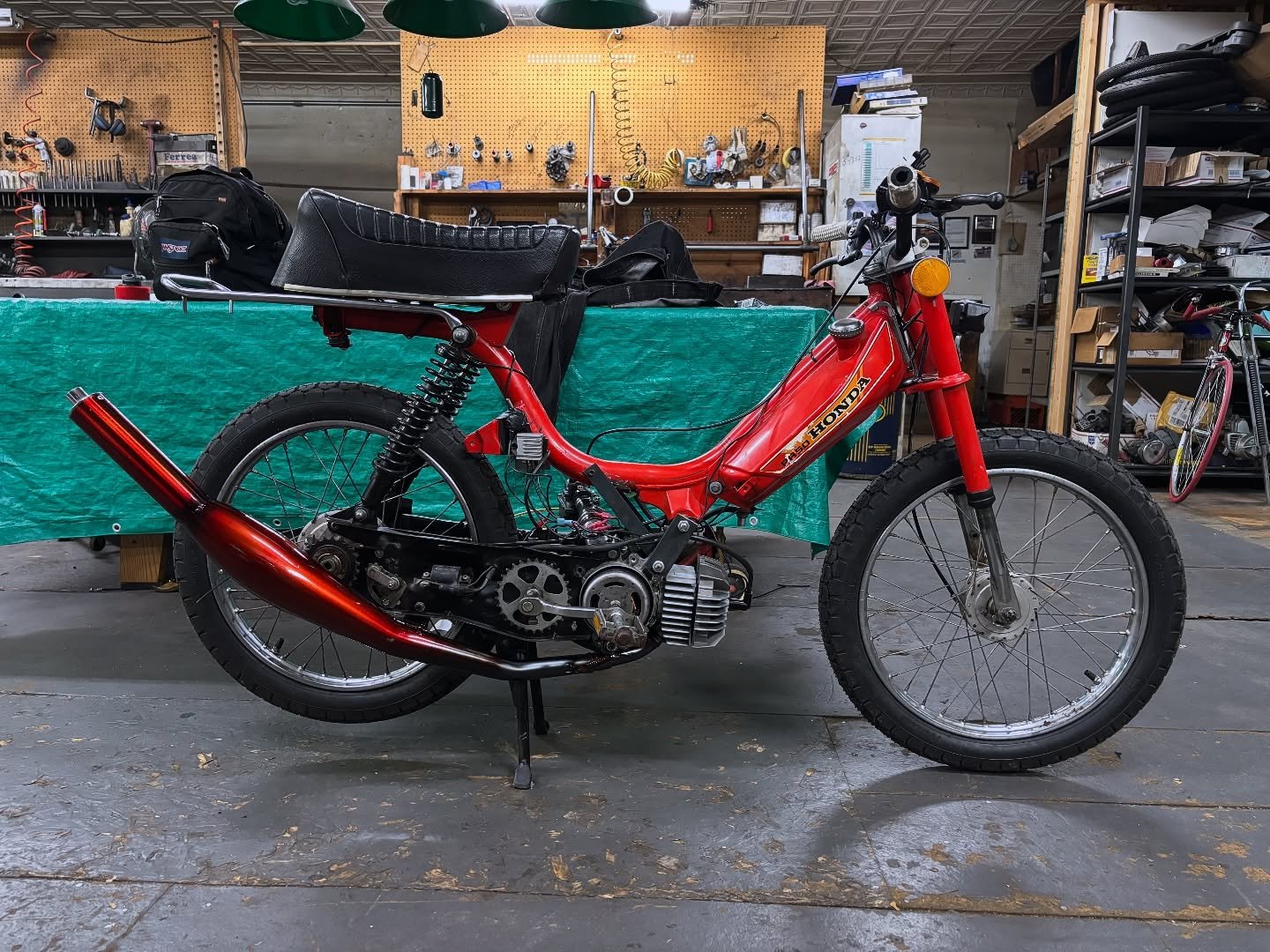 Motor time, and boi did I go through it on this one.....I started with a Stocko kit, which as all stocko kits do, it seized. Ya I saved it and it ran fine, but I was pissed. So I tossed a DR cylinder with the upgraded Treats piston on. I have already ran the DR so I wanted something different, I also ported the shit out of the exhaust. Then came the series of carbs, 15 sha on a stock reedblock, vm18 on a Treats Dio spacer (this would have been fine but the reducer I use on the OKO sized Dio reed intake was just to big to properly seal the spigot mounted vm18). The 15 SHA had pooling issues on the stock reeds, VM18 well see above, so what is a boi to do? Well I had that giant god damn intake so the answer was TM24. Was this a bad call? We will see. The rest of the motor is a Treats stuffy crank, stock cdi, pa50-2 clutch bell with shoes removed & a one-way bearing, TjT w/12g, Treats PMI pipe, Treats 4-u belt, stock US contra w/yellow spring, and full LED lighting. Now back to that damn carb, its tuned great, really rips, IDK which is louder, it or the pipe. However, starting this god damn thing on a Dio reedblock is a bit tricky, despite it being tuned perfect the velocity to start is just off. Pulling that much air on a quick pull just doesnt do it. Thats where the one-way bearing comes in, it starts right up when pushed 3-5 feet if cold. After that the pull start starts first try every time. Why? Something something velocity.