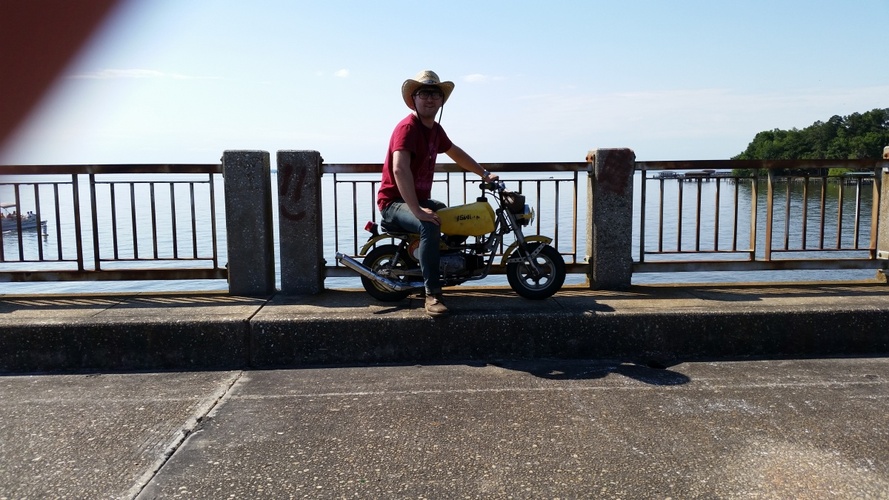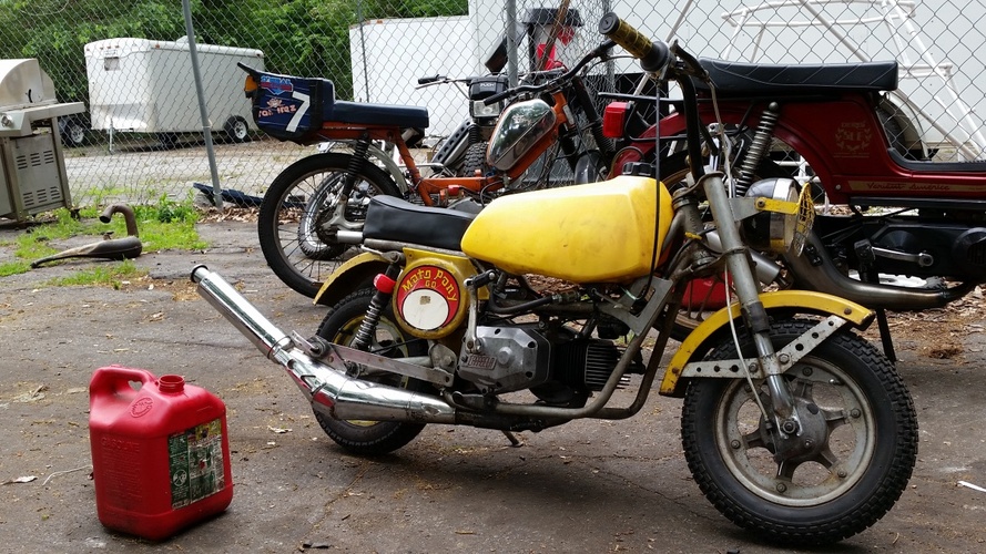 The original mexican mini bike. A friend has owned it for a couple of years and I finally convinced him on a trade. I put the plastic dirtbike tank on it. No idea what its from. For a kids dirtbike, it has a lot of balls.