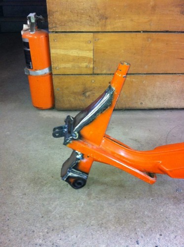 Hey Larry! let me try to clarify a few things. First, you are right....theres no rad on it because the pics were taken while the bike was still under construction. But there is a rad on it now :) You are also right about the Heel rear brake. Also, Yes it is a rigid (hardtail) For me they just look cleaner and simpler i guess. And that red "lever" is the Jockey style shift lever. By the way, the bike does ride pretty nice. not an easy one to ride but soooo F'N wicked!! And it is still under construction...!! still tweeking and adding stuff to it. Guess i should put a few more pics to show progress.