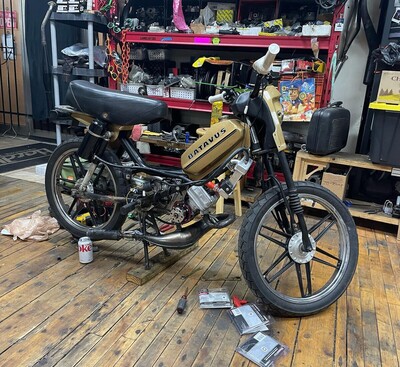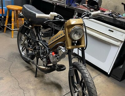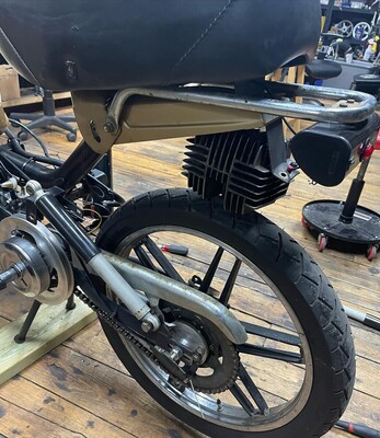 Update: didn’t put the time I should have into this bike in 2023. But it’s still moving, added a pump powered via a rectifier/regulator with an inline battery, taller rear shocks to allow more travel of the motor, Malossi hobbit phbg cap to prevent the carb from hitting the frame. Still needs more tuning, but hitting 50, this winter I’ll be switching to a Doppler spring and an Omega pipe, looking for 55-60 on 50cc