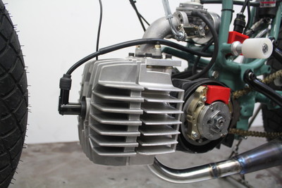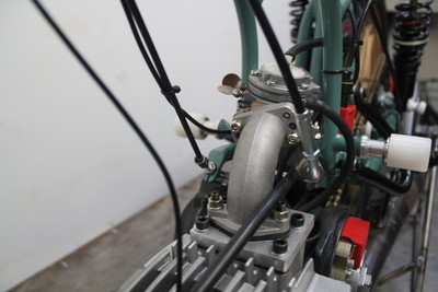 I actually ended up running a smaller, (16mm) Tillotson clone instead of the bigger 360A all the big boys use in their Derbi's. Other than a cracked intake manifold that leaned me out, I really think smaller was better on the Gila. The bike now sports a 1977's cast Gilardoni manifold thats been adapted to run these types of pumper carbs. The Super Clutch upgrade I did for this bike worked just ok. The springs suffered from major heat sag I think and basically shrank in length. Hopefully I find a better solution.