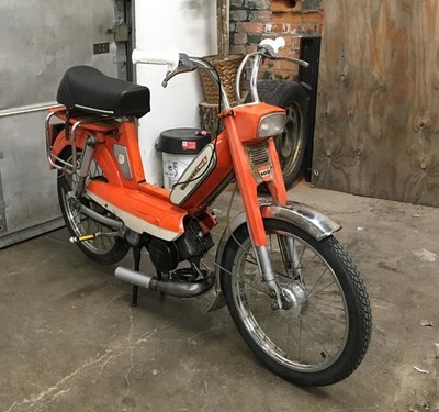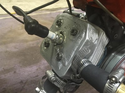 I was torn on this build, at first I wanted to keep it stock(ish) ported the stock 2-transfer cylinder, added some Tomos Airsal reeds, a small Circuit from DOS, and a 15 Sha, upon jetting I realized the seals, well blown out isn't the right word, I needed a 90 jet to get my temps under 400, just weren't there? So I decided if Im gonna rebuild the motor, I might as well make some upgrades, and I hadn't really built a 70cc 103 before so I said why not? I reused the stock cases, cut a third transfer, new bearings and seals, Doppler crank, I decided on the small port 70cc Airsal, the transfers lined right up and off I went, for the first set up I used a 46mm dcomp-less head, it ran well but as all French bikes do, it had heating issues, so I started looking for an LC head, I was going to use one of the MlM Hobbit 46mm heads but they are a bit pricey, considering Id be taking a dremel to them anyhow....150ish $...Now here's the deal 103 stud spacing is 70mm, hobbits are 67.5mm, so I found a guy who made a 47mm LC hobbit head, he was running m7 studs, so that meant he was at about 68.5mm, I took a 9mm drill bit and opened them up, now they were 69.5mm (NICE) and close enough. Boom head on, thermosyphon to the rescue again, temps well under 300 degrees. I modded up the stock vario in the traditional fashion, and boom we have a little ripper
