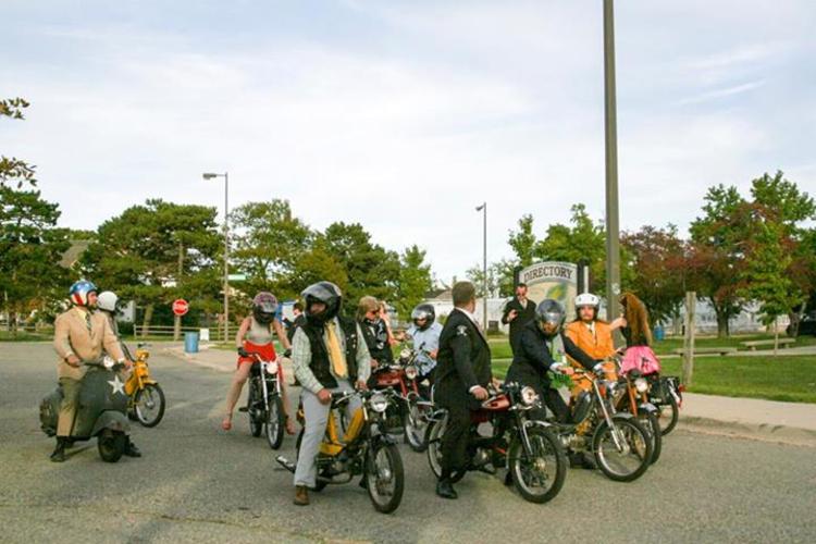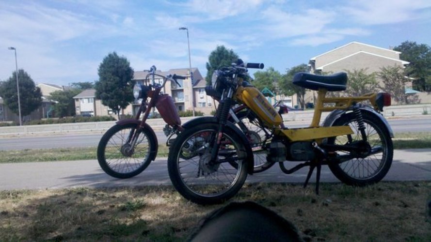 Polini powered M1 Pacer, Ed's clutch springs with 13x26 gearing gps'd at 51MPh. Tomos EBR's with a Pinto 1.5 seat. Starts first kick and has made it through 6 rallies in the last 2 years!