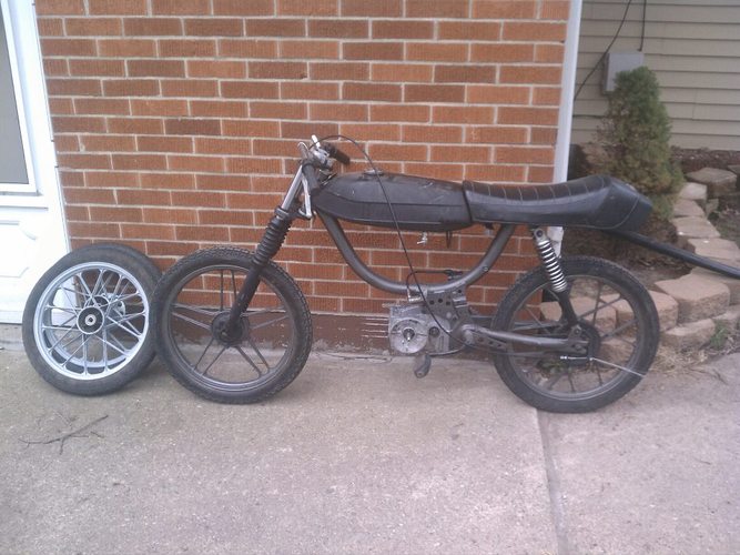 phase I is near completion, a simple Kstar build to get aquainted with the bike and see how far I wanted to go with this platform. I have another bike I'm building a ZA50 for so this bike will either get a monster E50 or a Z50 build. As well as a full restoration to near factory colors and plastics.