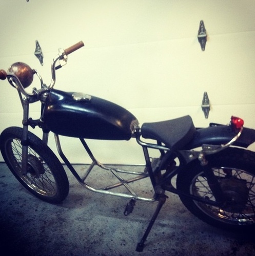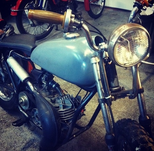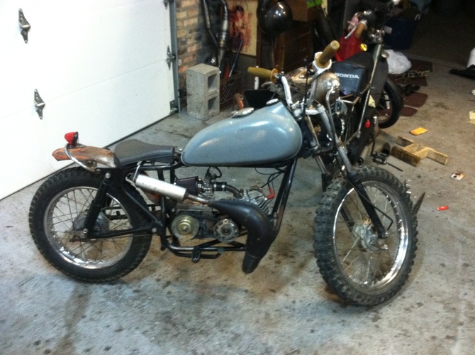I collected the parts for the build over a span of about 8 months, chopped the frame(stretched and sleeved), rebuilt all the components, found a PP derbi, etc.