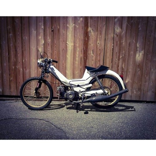 I got tired of my negrini so I sold it and bought this 2hp 1976 puch maxi from my friend Nick. (he has a few builds on here) I stripped it down, repainted it and rebuilt the bike. I have it gps confirmed at a top speed of 51 mph.