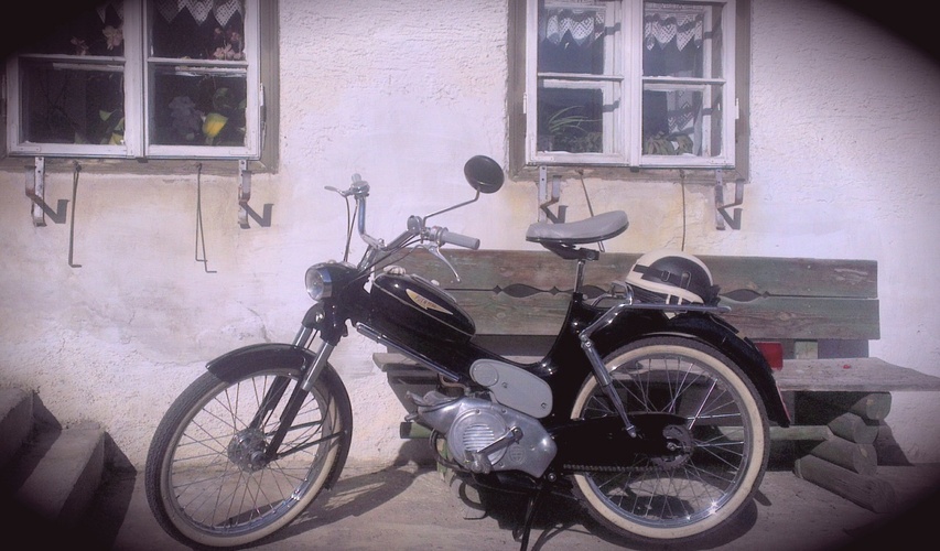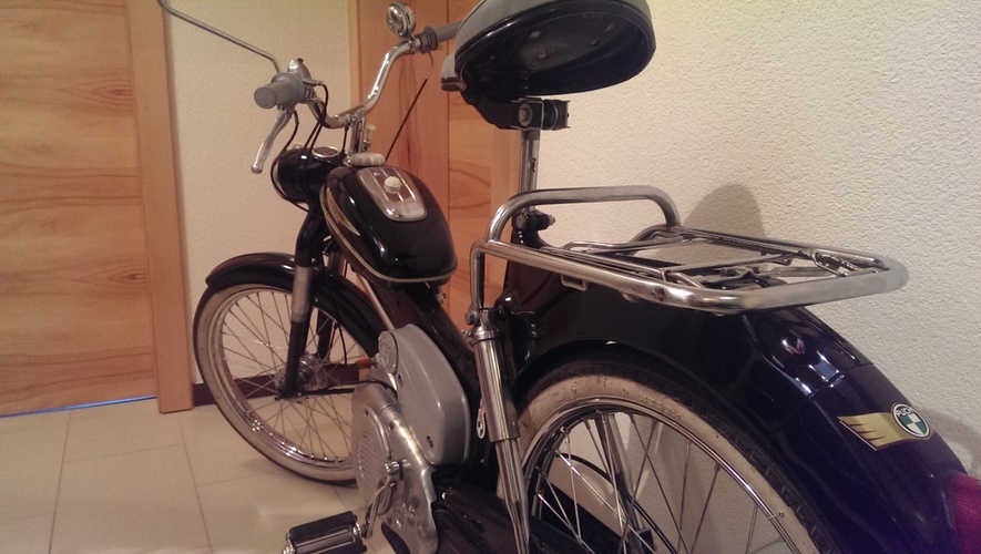 Das ist meine Puch MS50V BJ 1959, ich habe sie komplett restauriert. Sie war ein ziemlicher Totalschaden. Heute läuft sie wie eine Nähmaschine. Traumhaft.