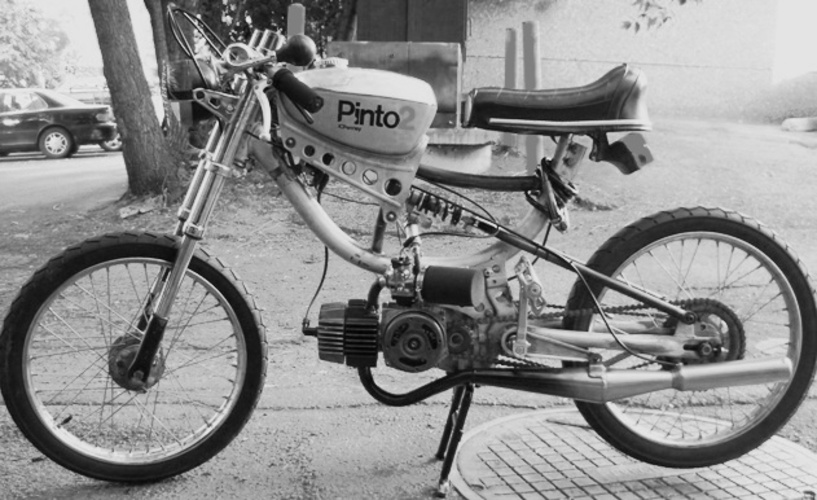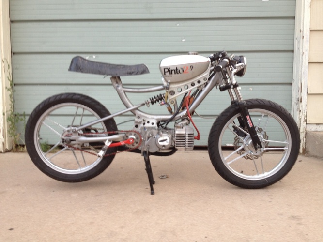 custom designed frame, front and rear hydro suspention, custom seat, way too fast, and hands down the nicest moped I've ever ridden