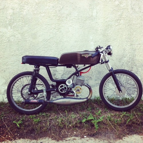 ordered frame from france, tank from yamaha rd60, everything else from treats.