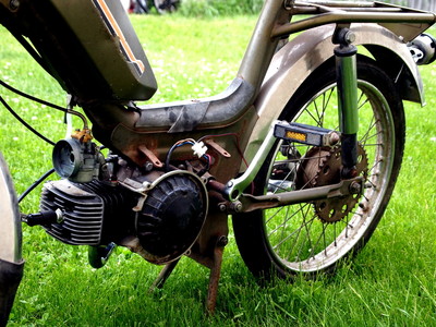 Got this as a dirty scrap bike with no top end and a shattered piston. I had enough spares to bring it back to life. It's not close to done yet, but it's a runner at this point. Still needs a chain, wiring, and a few other things.