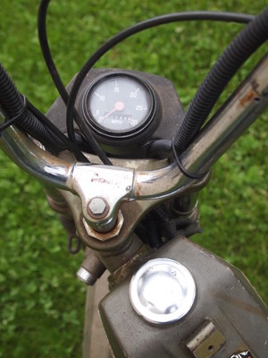 That is not the original speedometer, nor is it the original tail light assembly. Get the 11 tooth sprocket for 30 mph speed. It is also missing the plastic chain guard and plastic fender cover. If course, if you want to go extra-nerdy, get the basket to go over the rear wheel to haul two bags of groceries, or, in my case, a large amount of Playboy's from a garage sale. Please let me know how it looks when it's all fixed up. I have one in my basement that I need to restore as well. Same color, too.