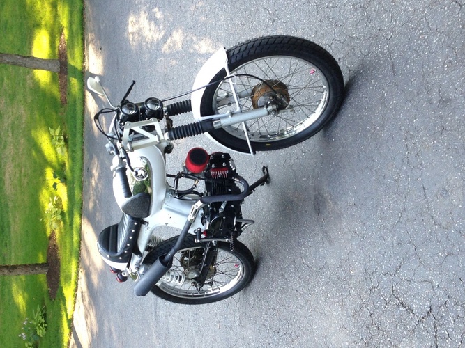 Mutt cafe racer By eric drummond · Honda SS50 · 1967 Added Jul 23, 2013 · Updated Jul 23, 2013 ♥ 2 likes ‹ › 1 / 2 × ‹ › It's a 1967 Honda ss50. It will do about 60, which feels like 100. Not much is original on it. It's a work in progress. Parts engine Lifan 110cc Comments (0) No comments yet.
