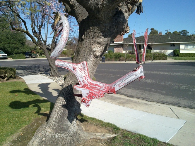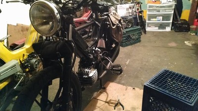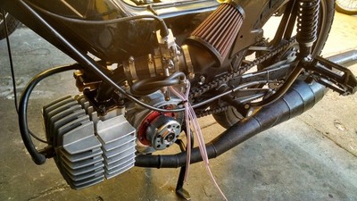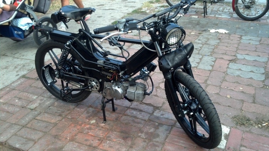 *UPDATE* Was rear ended by a bus and for now it's out of commission. Will have to replace a bunch of things in order to get it on the road again. Future plans once it's been repaired: Clean up those ugly cables! Seriously. Find a better seat that doesn't look so ridiculous. Find a better/larger taillight and switch the ugly chrome shocks to something black and hopefully hydraulic.