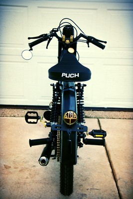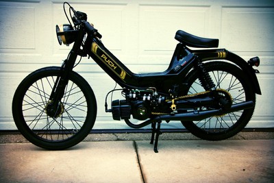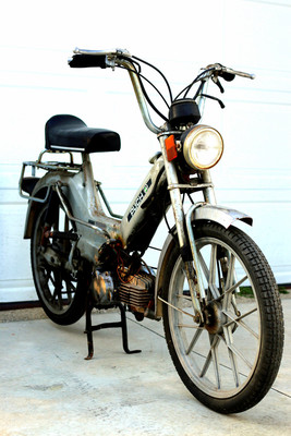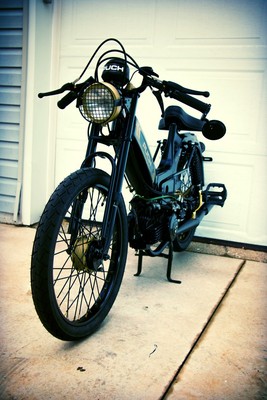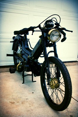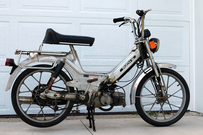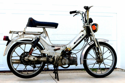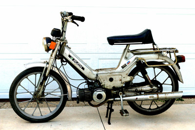 Started life as a bone stock 1977 Maxi Sport found at a yard sale in non-running condition. I was told had not been run in over 20 years, but it appeared to all be there. A few sprays of liquid wrench, and carb cleaner and it fired right up.