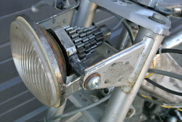 Headlight is sweeet. More pics of stretched swingarm and that chain roller...?