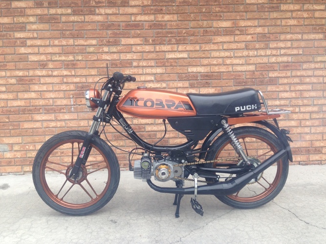 Orangeness By Christian Noel · Puch Cobra · 1986 Added Jul 6, 2013 · Updated Oct 5, 2013 ♥ 18 likes ‹ › 1 / 10 × ‹ › 86 Cobra Parts engine Puch E50 Puch 64cc Polini Reed Puch E50 Rito exhaust Puch Weak-Ends electrical Puch HPI Mini Rotor CDI carburetion Dellorto 21mm PHBG -Racing Edition Tuning Main 98 · Idle 45 Comments (2) Andrew Noel — 12 years, 4 months ago Update your pics! This bike is ready to roll hard! Elyse Dequina — 12 years, 8 months ago Looks great with the logo back on there!