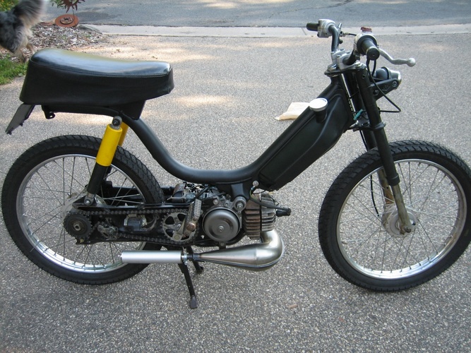 PA50II By Moped Taco · Honda PA50 II · 1981 Added Jan 17, 2013 · Updated Jan 21, 2013 ♥ 9 likes ‹ › 1 / 2 Stock ported cylinder, boyesen reeds, drilled stock carb to 12.7mm, notched stock variator, proma pipe. 35+ mph Parts engine Honda PA50II Honda Stock 50cc carburetion Keihin 12mm exhaust Honda Hobbit Camino Proma Comments (0) No comments yet.