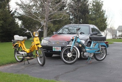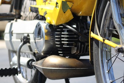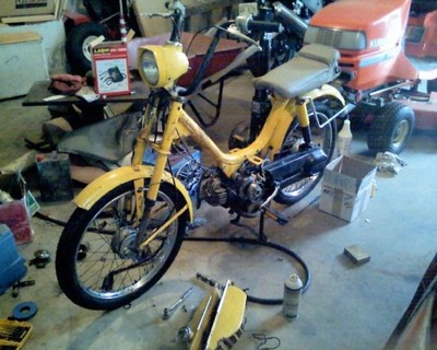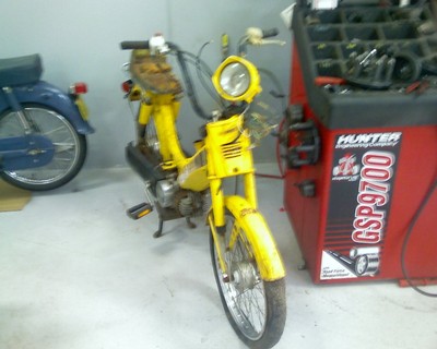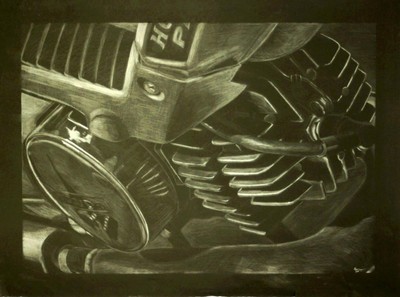 Bought for $20. Wheels seized but Engine was free. Spent a whole summer fixing it up. Yes I did that drawing of the head and Proma pipe (white pencil on black paper)