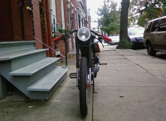 I built this bike in October of 2008. That's almost 5 years ago from the time i am typing this. In its latest state before i sold it, it had been in an accident that left me unconsciousfor a few hours. It prompted me to make it faster and more dangerous. I put a 64cc polini kit with 4 petal malossi intake 21mm phbg, stuffed crank, and a simonini pipe. the greatest setup for an e50 ever. it was clocked at 65mph up a hill, with stock points and a modified 2 shoe clutch. I traded it for an mb5 nd some cash. and it somehow ended up in the hands of Onell Lee of orlando florida, he still rides it after making very few changes.