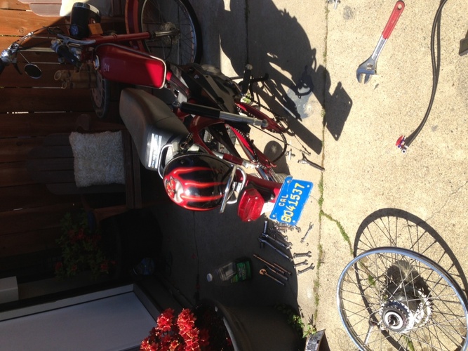 my plan is to strip it down Paint it with a black frame, white fenders and some kind of saddlebags, split the tank and paint it black and white. The theme I'm going with is a old police bike. maybe a campus police or whatever.
