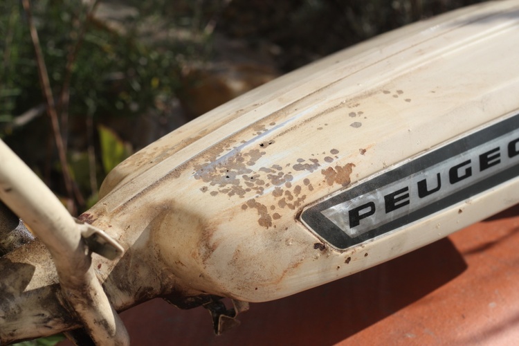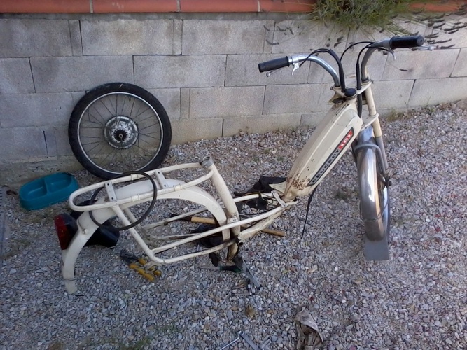 I decided to rebuild my rusty old peugeot 101.. The tank died, but I found a Garelli tank , a new headlight and seat.