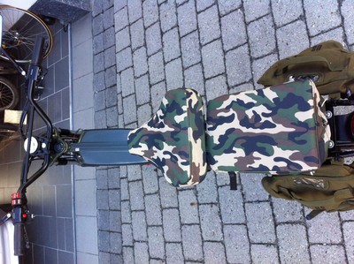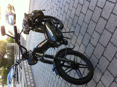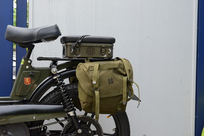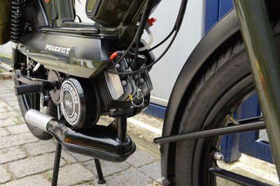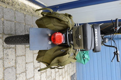 This is a revamp of a frenchy Peugeot 103 SPL - L stands for Land, a famous and rare bike from end of the 70s (1979/1980). Guess it´s been available in France only and the french youngsters loved to put these US- army field bags on it. I changed the look to be a more military by adding more black parts on it. All black colour is powder coated- most parts used are NOS. Currently (July 2015) I am building a second Peugeot 103 SPL which will be for sale soon. I choose hi-end surfaces and try tp put on the best parts I can find on the french market.