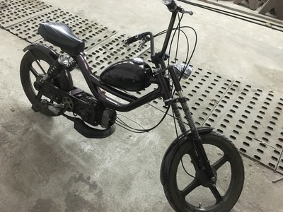 This was built years ago and I don’t remember all the details now. Runs fast and smooth. The exhaust is very loud but it sound like a big V2 when idling. The crankshaft is modified for the the 43mm Mallosi cylinder kit, and the engine displacement is actually 68cc. The carburetor is a Dellorto 16mm. I never found the time to install the Brembo discs and calipers and it is with the stock drum brakes, so I drive it carefully. The gas tank is from a Simson SR1 moped.