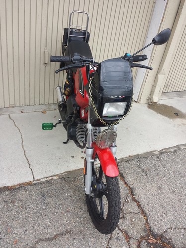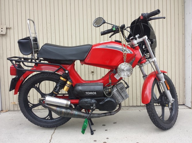 This is Jason MacDonald's Tomos. He bought it for $400. I bought the Estoril pipe for $100. We rode this bike together as Team Sushi.