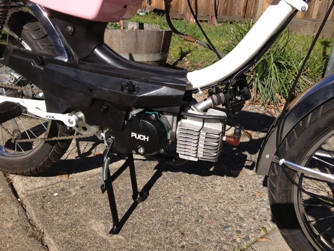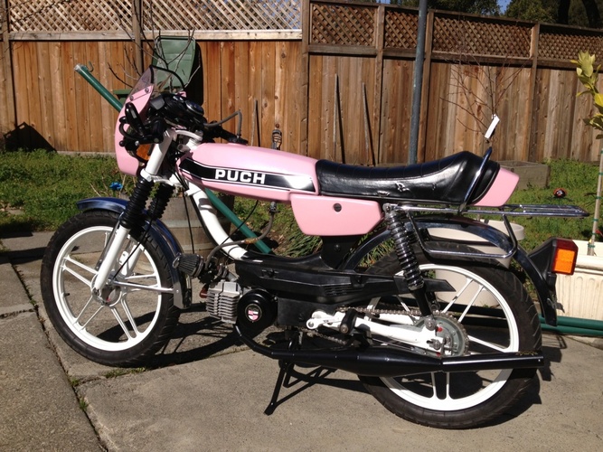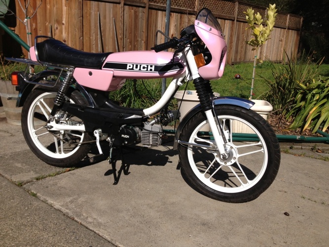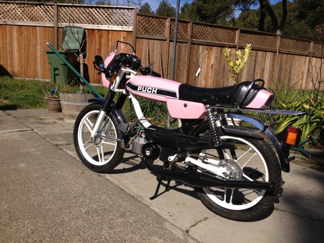 My girlfriend rode my Magnum so I had to build her one so I would get mine back. This is a complete Restore with Pearl Pink. Hydraulic front forks and sebac 360mm shocks. Malossi 4 petal reed block.