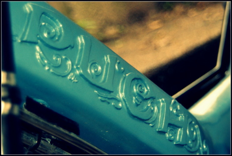 I pushed body filler through a rubber stencil and covered it with fiberglass resin. I used 2 separate stencils so the letters and the scrolling had different dimension. If given the opportunity to do it again, I would do it a bit different now. The logo isn't perfect, in that it definitely has a made by hands feel versus a machine pressed thing. Glad you like it. It's for sale if you really love it...