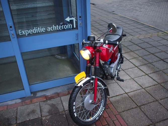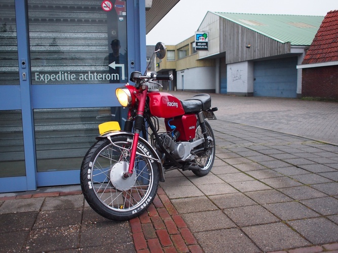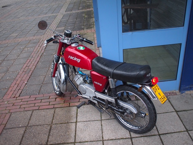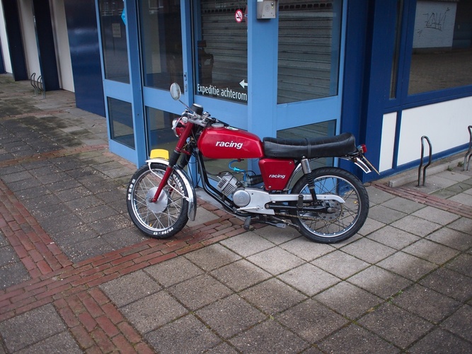 wich has a yamaha fs1 front fender and a kreidler rear fender, also i have fitted a 70cc airsal, and michelin racing tyres, i'll admit, it's not really that special, but it's a pretty rare moped wich you don't see every day :)